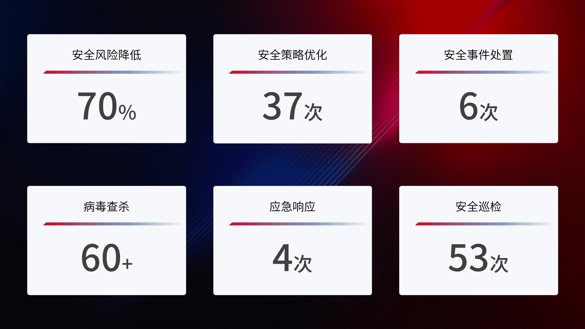 提供全面的安全事件报告体系,,包括处置报告、、周报、、季度和年度总结,,,结合持续监控,,帮助客户深入了解网络安全状况。。